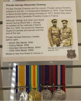 George Downey et son cousin James Downey se sont enrôlés ensemble dans le 2e Bataillon de construction, à Halifax, en septembre 1916. Ils se sont entraînés à Pictou et Truro, en Nouvelle-Écosse, avant de s'embarquer pour outre-mer à bord du SS Southland le 28 mars 1917 . Leur unité arriva à Liverpool, en Angleterre, le 7 avril 1917.